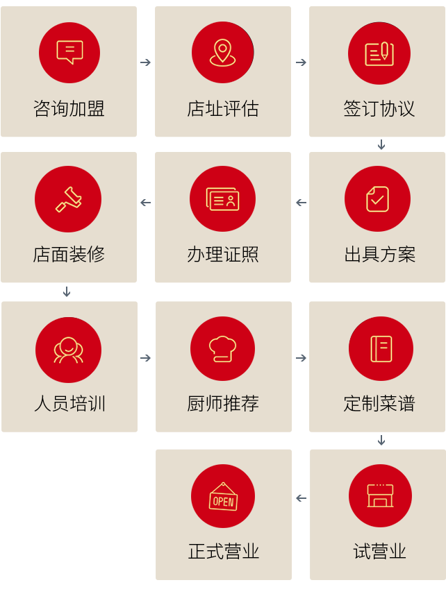 設(shè)立人才庫系統(tǒng),為加盟店推薦廚師團(tuán)隊(duì)和前廳管理人員。