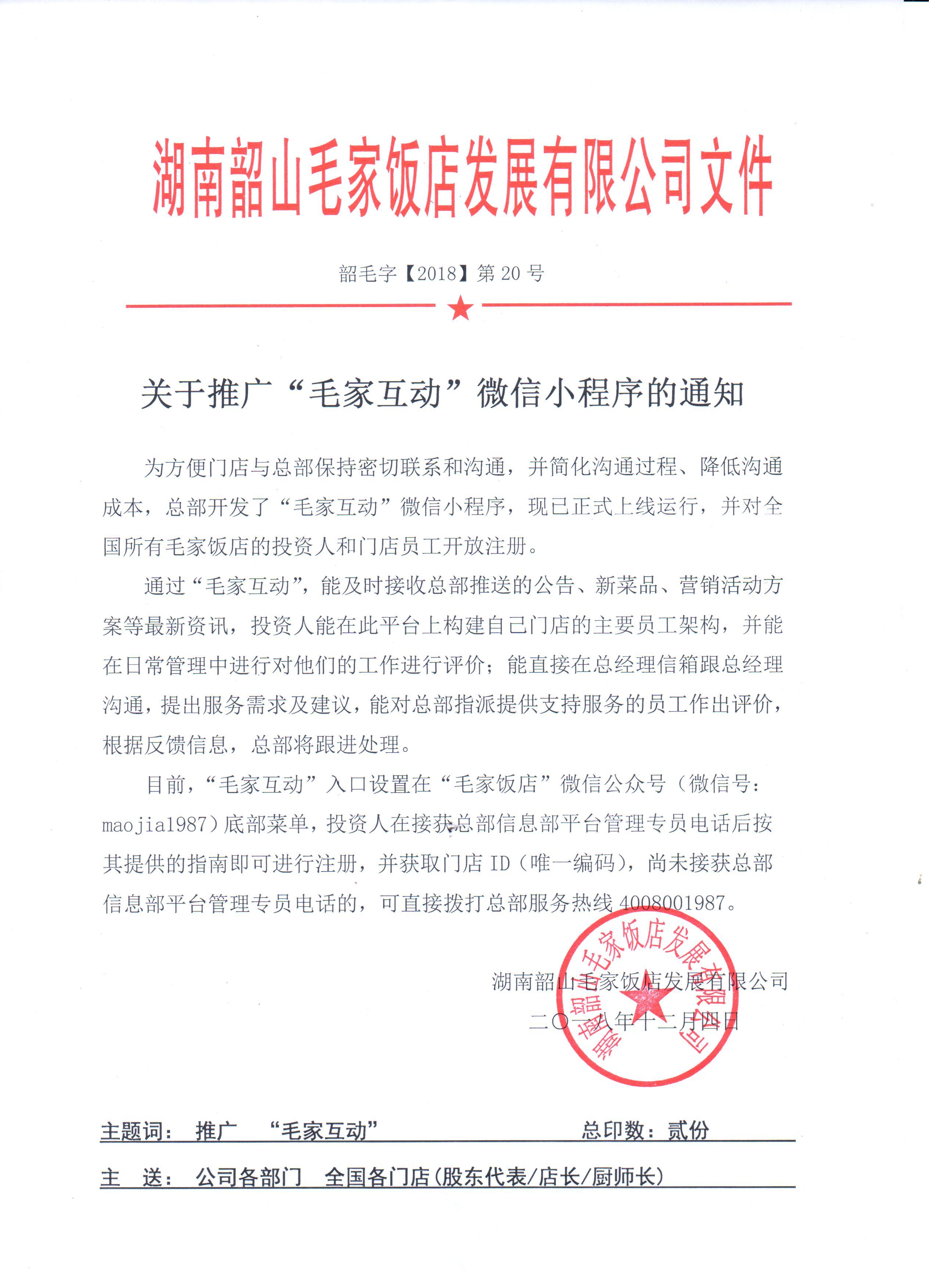 關(guān)于推廣“毛家互動(dòng)”微信小程序的通知