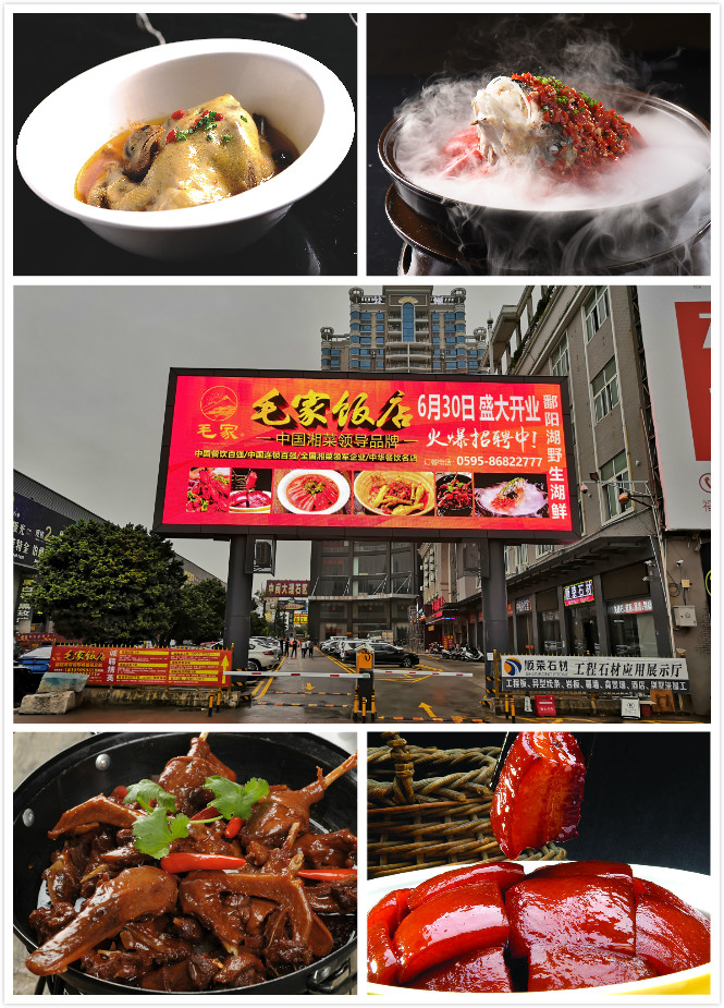 福建南安毛家飯店座落于福建省南安市水頭鎮(zhèn)中閩石材城濱海大道390-35,總面積560平方米。店內(nèi)包廂數(shù)8個、餐位數(shù)210個,共有26個桌臺。這里有極具氣派的裝修,宴會大廳優(yōu)雅舒適,配備超大舞臺,電子顯示屏,多媒體系統(tǒng)等,設(shè)施一應(yīng)俱全,是您及家人和朋友,吃飯、休閑的好去處。
