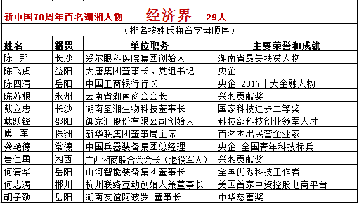 附:新中國70周年百名湖湘人物”經(jīng)濟界29名名單: