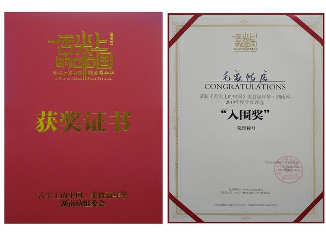 迎接2020年的到來,你有什么新“花樣”?毛家飯店竟然是用一個(gè)獎(jiǎng)項(xiàng)來迎接2020。榮譽(yù)墻上又添一張榮譽(yù)證書,這份證書就是《舌尖上的中國》美食嘉年華·湖南站2019年度美食評選“入圍獎(jiǎng)”。