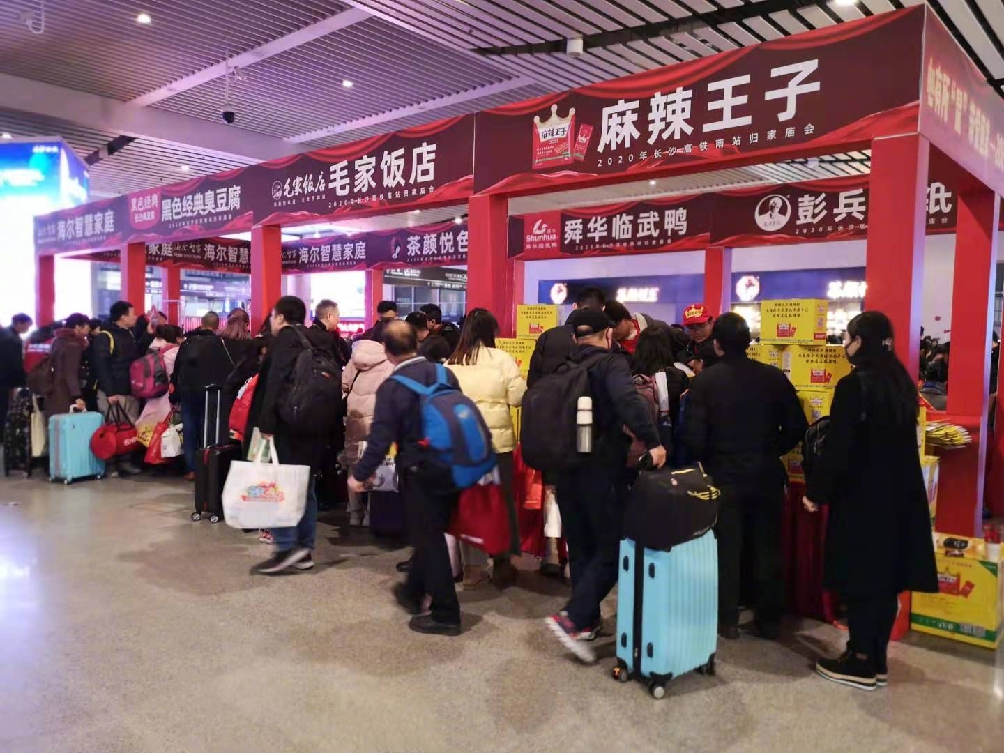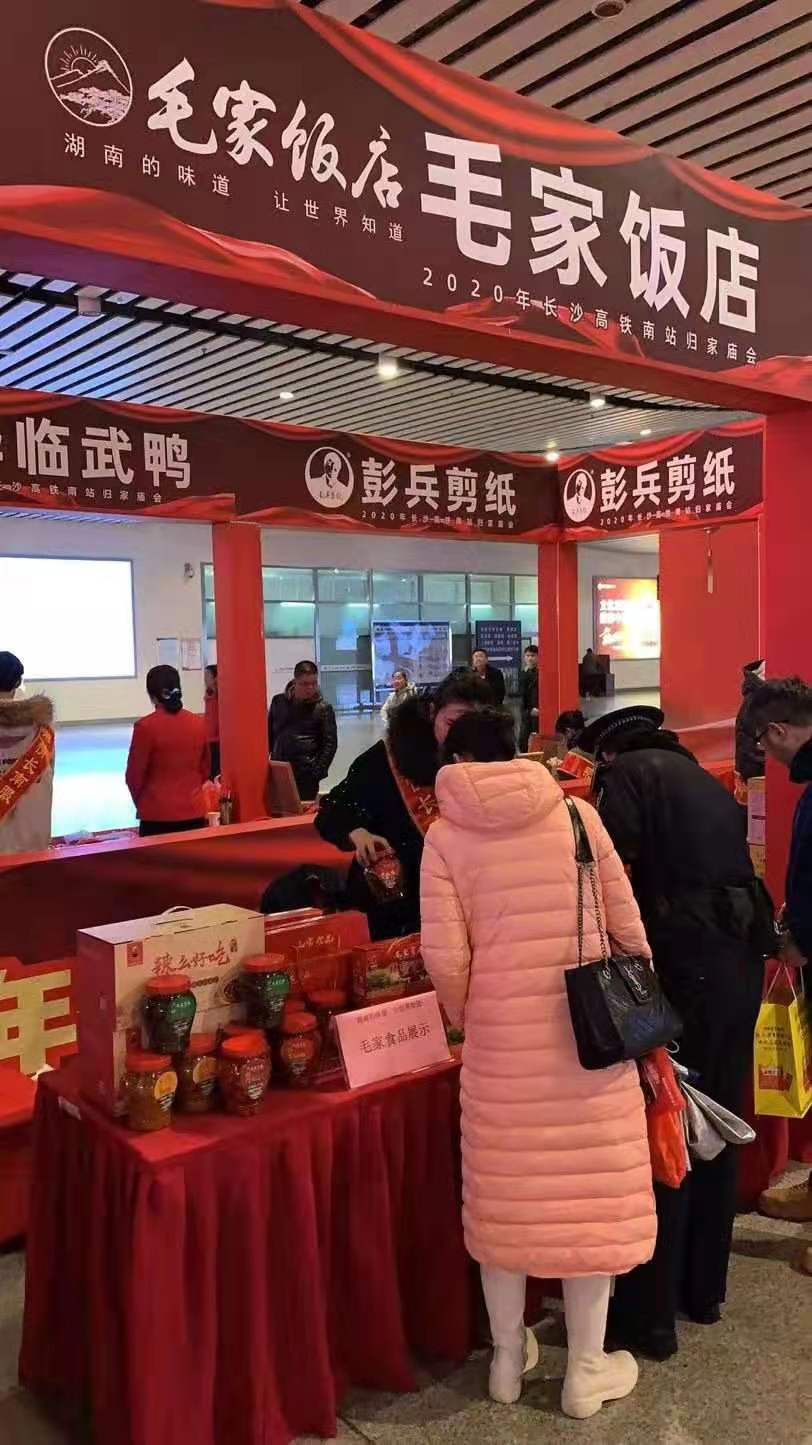 春節(jié)的腳步越來越近,親人回鄉(xiāng)的路程也越來越短,過年團(tuán)聚的氛圍也越來越濃烈。為了讓更多歸家的旅客提前感受到家鄉(xiāng)的溫暖和親切,長沙高鐵南站在1月15日舉行了一場以“尋味湖南”為主題的“2020歸家廟會”,為回湘游子備上多款年貨。高鐵站的多家商鋪參加了此次廟會,其中就包括了毛家飯店長沙高鐵店。