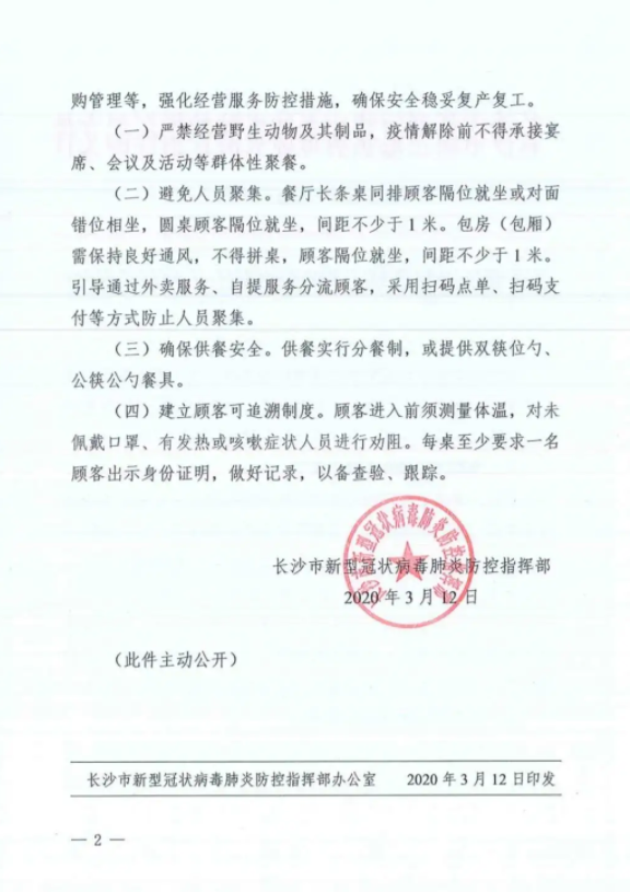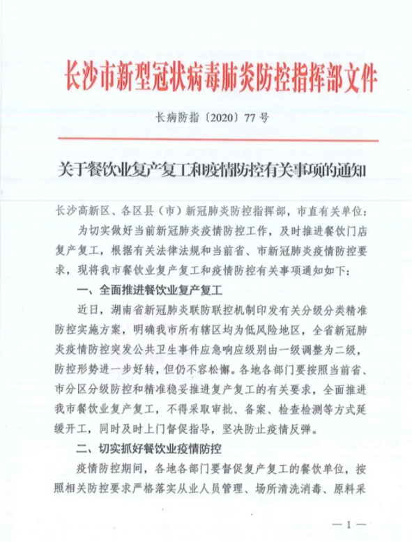 近日,長沙市新型冠狀病毒肺炎疫情防控指揮部今天就餐飲業(yè)復(fù)產(chǎn)復(fù)工和疫情防控有關(guān)事項,發(fā)布通知。
