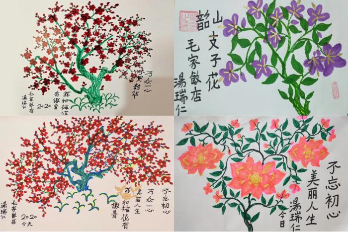每一幅畫作充滿著朝氣,融入了一種陽光和豁達(dá),沒有一絲陰霾,傳達(dá)出一種積極向上的力量,更表現(xiàn)出湯奶奶猶如梅花般傲骨的心態(tài)。湯奶奶的畫作上幾乎都有這樣的題字:“學(xué)無止境 美麗人生”,這八個(gè)字正是湯奶奶一生的寫照。在韶山毛家飯店里,湯奶奶的畫作隨處可見。每天一幅畫作,風(fēng)雨不改,現(xiàn)在湯奶奶的畫室儼然成為了毛家飯店一道獨(dú)特的風(fēng)景。