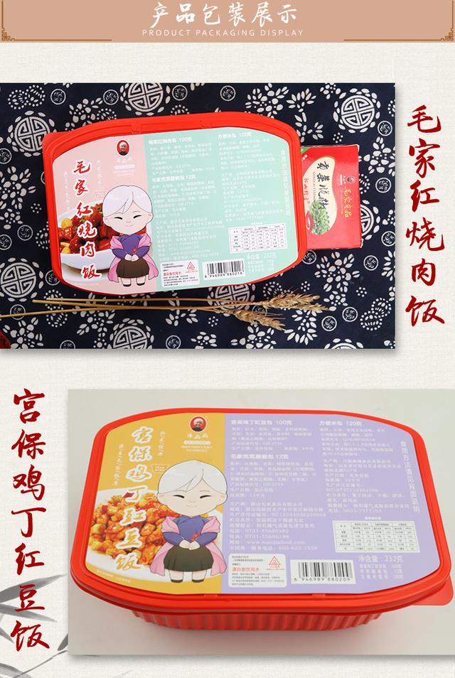毛家自熱米飯目前有兩種口味,分別是毛家紅燒肉、毛家宮保雞丁豇豆飯。眾所周知,毛家紅燒肉是毛家飯店的經(jīng)典招牌菜品,是偉人生前很愛吃的一道菜,也是獲得人們稱贊的經(jīng)典佳肴。毛家紅燒肉自熱米飯,既滿足了喜歡毛家紅燒肉的念想,還讓我們獲得美味的方式更加便捷了。