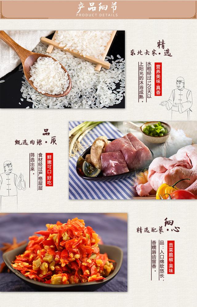 毛家自熱米飯,精致食材成就不一般的美味。精選東北大米,水稻經(jīng)過120天以上陽光的沐浴成熟營養(yǎng)美味。甄選品質(zhì)肉源,食材經(jīng)過嚴(yán)格層層篩選,鮮嫩可口。精選美味配菜,貢菜脆椒入口綿軟悠長,香糯唇齒留香。