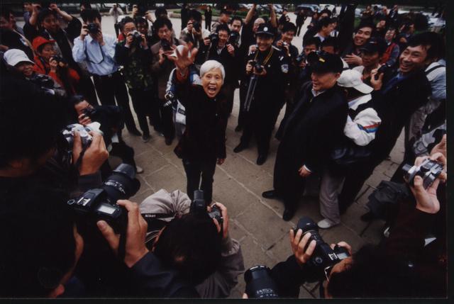 1993年湯瑞仁在銅像廣場被來自全國的記者、攝影師們包圍