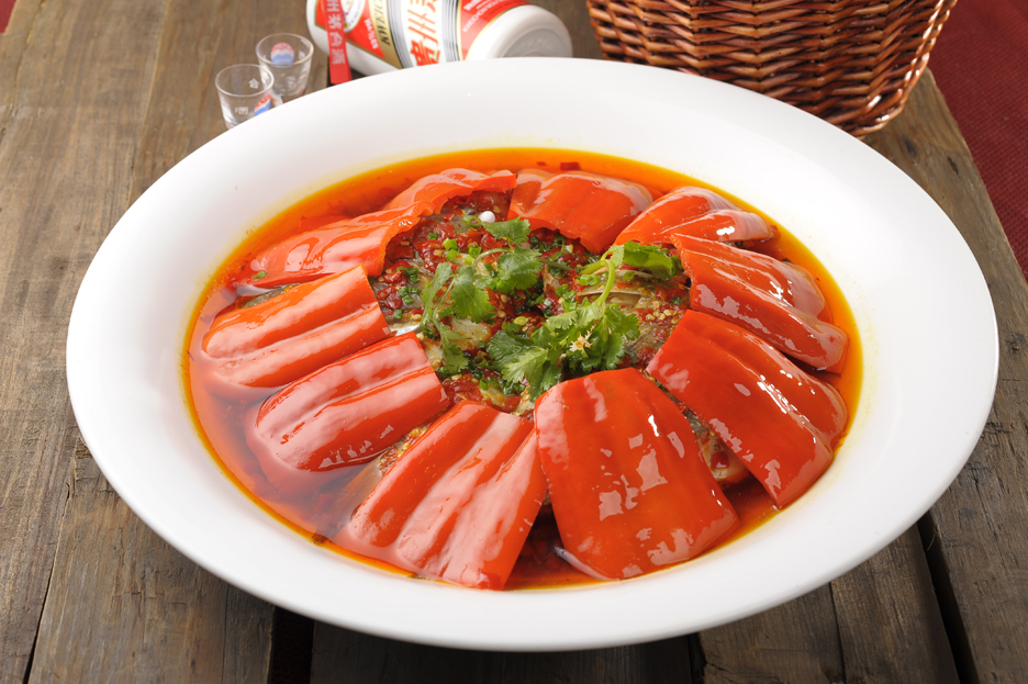 作為毛家飯店的特色招牌菜,江山一片紅實(shí)則是剁椒魚頭,不過在烹飪方式和擺盤方式上是大相徑庭的。將魚頭對(duì)半切,在烹飪的時(shí)候加上毛家秘制的調(diào)料和毛家自產(chǎn)的剁辣椒或者貢菜脆椒,能夠更好的去腥入味。最后將大紅菜椒切成大片,蓋在魚頭上面,將其蒸煮成熟。鮮嫩的魚頭肉,蘸上毛家特有的醬料,再吃一口脆嫩的大紅辣椒,人間美味便在于此。