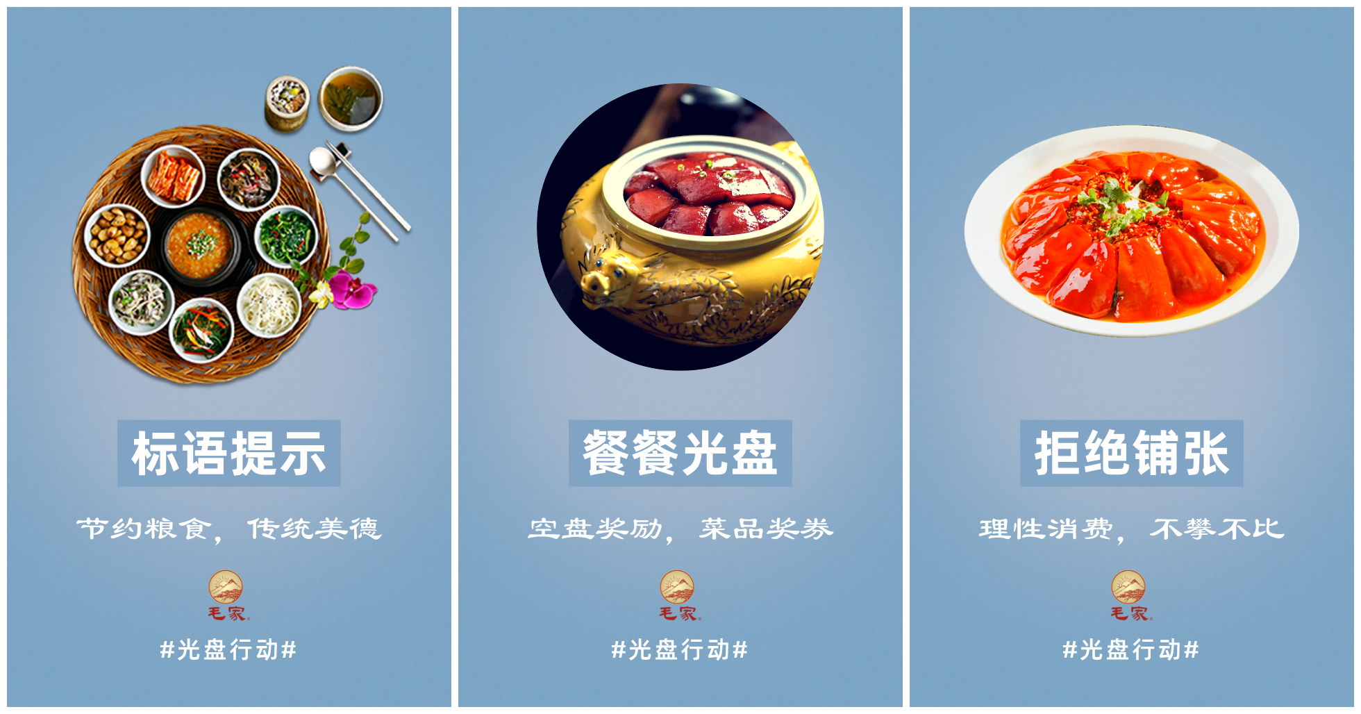 盡管我國糧食生產連年豐收,對糧食安全還是始終要有危機意識,今年全球新冠肺炎疫情所帶來的影響更是給我們敲響了警鐘。為響應堅決制止餐飲浪費,提倡“厲行節(jié)約、反對浪費”的社會風尚,毛家飯店從自身做起,為遏制餐飲浪費現(xiàn)象,積極開展“光盤行動”,提出并將推行以下措施和建議: