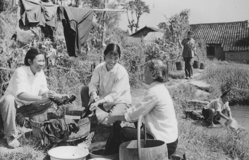 (湯瑞仁(左一)帶領(lǐng)婦女為警衛(wèi)班戰(zhàn)士洗衣)