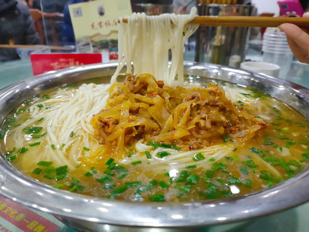 一碗碗熱騰騰、香噴噴的面條端上餐桌,面條白凈細膩,配上新鮮熬制的高湯,餐桌上擺放的是貢菜脆椒、火焙魚、花生米、涼拌木耳等配菜,又一次遠道而來的人們知道,還是那碗熟悉的味道,充滿了淳厚、質樸的人情味。
