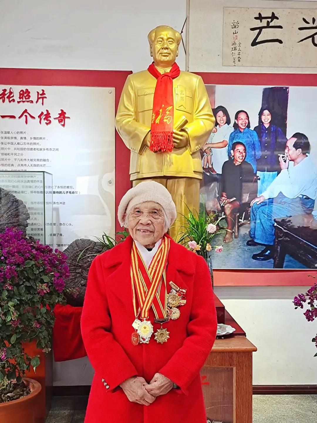 92歲的湯瑞仁奶奶是毛家飯店的創(chuàng)始人,今天起了個大早,精神狀態(tài)極好,胸口掛滿了各種獎章和獎牌,“我是毛主席的鄰居,不能給他丟人,要接待好主席的客人,讓大家吃得放心、安心、開心?!睖鹑世夏棠逃H切地招呼著每一位來吃福壽面的人們,“沒有毛主席就沒有新中國,更沒有今天的毛家飯店。傳承紅色基因,將偉人精神傳遞給后輩,不忘初心,牢記使命!”
