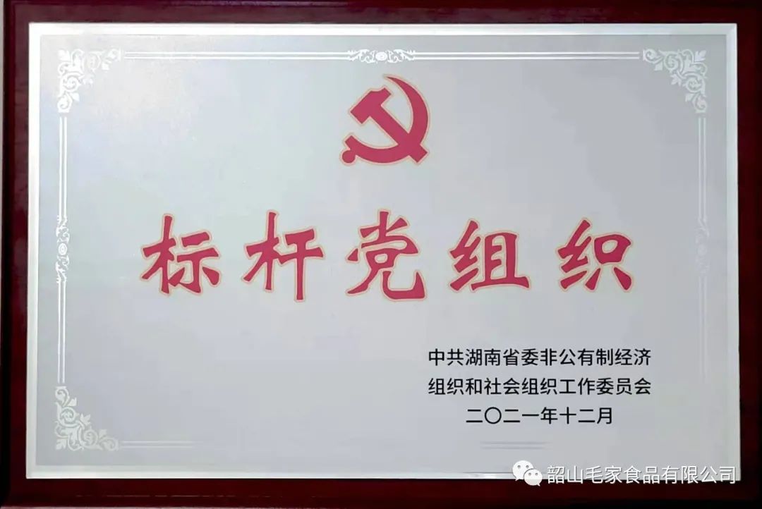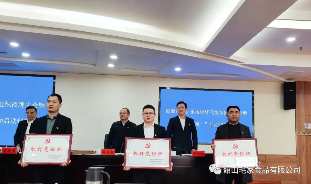12月23日,湘潭市兩新領(lǐng)域標(biāo)桿黨組織授牌大會(huì)暨“黨建一幫一”活動(dòng)在湘潭市政府大樓舉行,對獲得省市縣“標(biāo)桿黨組織”進(jìn)行集中表彰授牌。韶山毛家食品有限公司黨支部獲評湖南省“標(biāo)桿黨組織”榮譽(yù)稱號,也是韶山市唯一榮獲該榮譽(yù)的兩新組織。