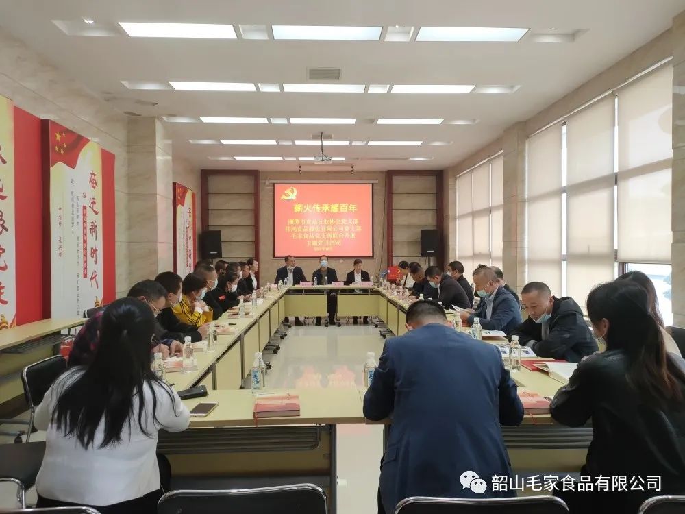 10月26日下午,湘潭市食品行業(yè)協(xié)會黨支部、偉鴻食品股份有限公司黨支部、韶山毛家食品有限公司黨支部聯(lián)合開展主題黨日活動。湘潭市工信局食品科科長羅起、湘潭市岳塘經(jīng)開區(qū)兩新組織黨委專職副書記彭文藝、湘潭市食品行業(yè)協(xié)會黨支部書記劉冬明以及食品行業(yè)協(xié)會各企業(yè)黨支部書記及黨員代表30余人參加了此次以“薪火傳承耀百年”為主題的黨日活動。