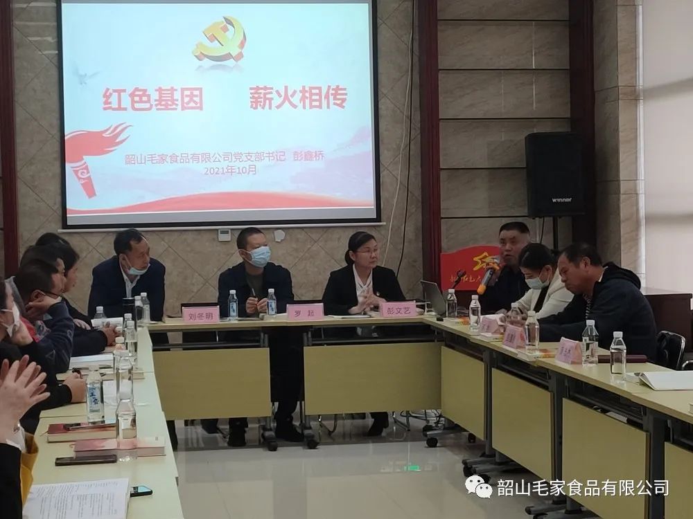 接著,毛家食品黨支部書記彭鑫橋通過四個篇章向在座的黨員介紹了支部的建設情況。2021年6月25日,習近平總書記在十九屆中央政治局第三十一次集體學習時強調(diào):各級黨組織要充分用好紅色資源,教育引導廣大黨員、干部賡續(xù)紅色血脈,做到學史明理、學史增信、學史崇德、學史力行。毛家食品黨支部自成立以來始終發(fā)揚創(chuàng)始人湯瑞仁女士的“仁德”理念以及“為人民服務”的宗旨,以紅色教育為抓手,傳承紅色基因,強化黨建引領,打造出堅固的“紅色堡壘”,讓紅色基因薪火相傳、歷久彌新。