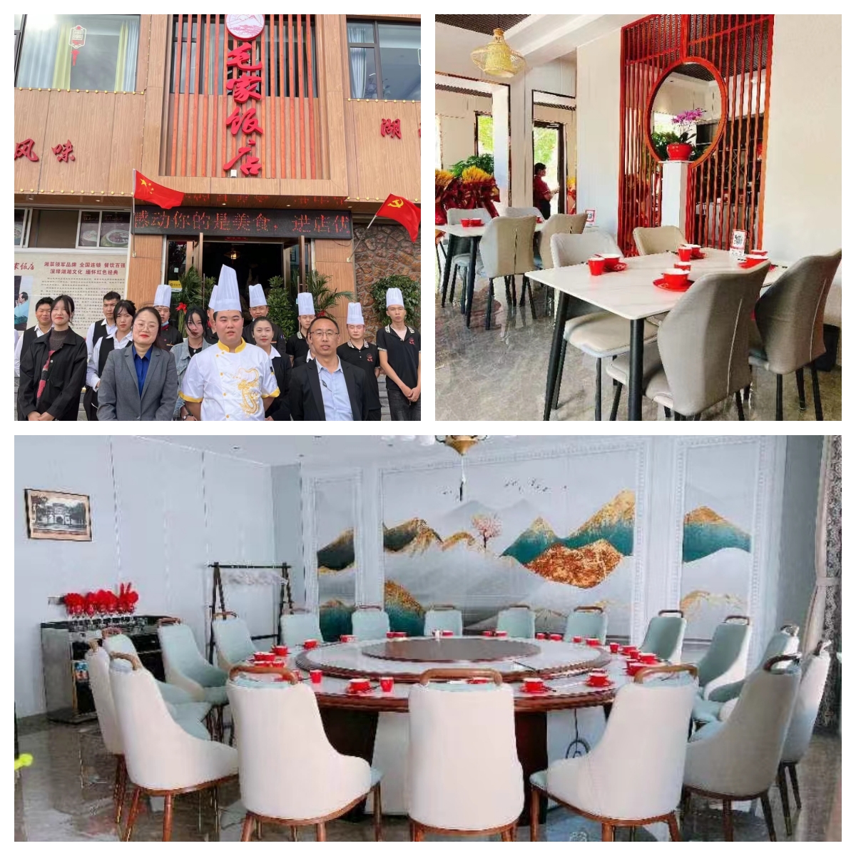 店面具有主題鮮明的菜品,例如濃郁的湖南毛家風(fēng)味特色菜肴:毛家紅燒肉、長征雞、江山一片紅等。毛家菜品源自毛主席生前最愛吃的菜肴,已在紅色歷史的韶山沿襲多年,自成一體。經(jīng)過多年的不斷挖掘和創(chuàng)新,逐漸形成了比較完整的烹飪體系。毛家菜品的做法自有一套,從用料、烹調(diào)方法到風(fēng)味、特點都一絲不茍,因其用料新鮮、口感香辣而贏得各地食客的好評。