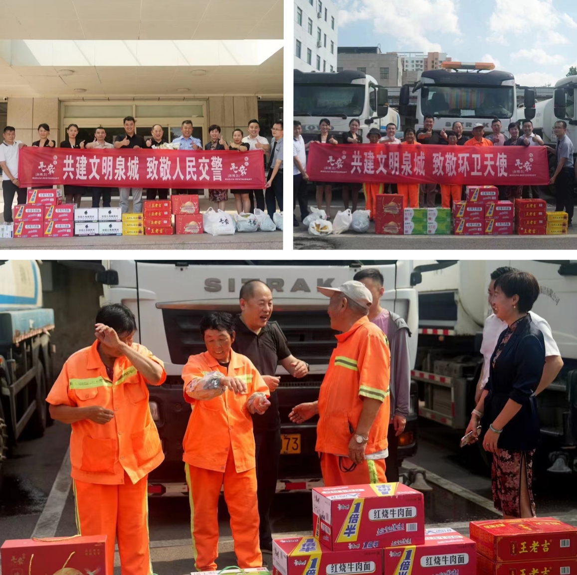 毛家飯店山東濟(jì)南店也為當(dāng)?shù)亟痪铜h(huán)衛(wèi)工人送去避暑物資,還有全國(guó)各地的毛家飯店都在用不同的方式去表達(dá)這份崇高的敬意和真摯的感謝,這不僅僅是一份物質(zhì)上的饋贈(zèng),更是對(duì)他們守護(hù)一方平安、無(wú)私奉獻(xiàn)精神的最高贊譽(yù)。
