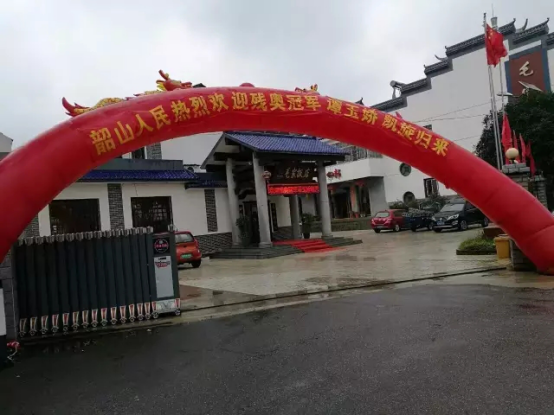 2016年9月29日,瑟瑟秋風(fēng)夾雜著小雨,但阻擋不了冠軍回家的激切心情。韶山毛家飯店張燈結(jié)彩,迎來(lái)了從里約殘奧會(huì)歸來(lái)的舉重冠軍譚玉嬌。