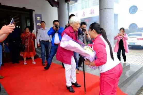 整個(gè)毛家飯店熱鬧非凡,鄉(xiāng)親們從四面八方涌來(lái)。韶山市的相關(guān)領(lǐng)導(dǎo),十五、十六、十七、十八大黨代表毛雨時(shí)和眾多鄉(xiāng)親都慕名前往看望冠軍譚玉嬌,一睹她的英姿。毛家飯店創(chuàng)始人湯瑞仁奶奶更是格外興奮,見(jiàn)玉嬌迎面走近,她松開(kāi)時(shí)刻不離的枴杖,為玉嬌送上鮮花,并張開(kāi)雙臂一把把玉嬌擁抱在懷中,口里念念有詞地說(shuō):“你是殘疾人,你好了不起!我也是殘疾人,我要向你學(xué)習(xí)!”之后,很風(fēng)趣地對(duì)玉嬌說(shuō):“你是右腳我是左腳,我倆拼在一起就很完美了哦!”