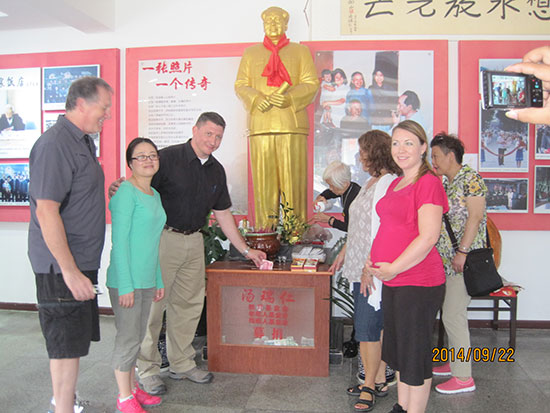 2014年9月22日,韶山毛家飯店又迎來了一幫熟悉的美國朋友。這些年,他們每年都會來韶山參觀,瞻仰主席故居,也在毛家飯店吃飯。今天中午,董事長湯瑞仁女士熱情洋溢地向他們介紹了主席的豐功偉績,“為人民服務(wù)”也是毛家飯店多年經(jīng)營以來不變的服務(wù)宗旨。