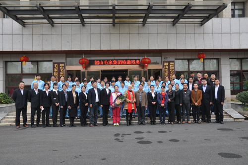 當(dāng)小轎車停落廠門口,譚玉嬌剛下車,鞭炮就響起來,一位靚麗的女職工即步向前獻(xiàn)上了一束鮮花,夾道歡迎她的工友們掌聲齊鳴,早在等候的韶山高新區(qū)領(lǐng)導(dǎo)丁浩書記和毛家集團法人代表毛桃芝與她親切握手,毛家集團創(chuàng)始人湯瑞仁老人與她緊緊擁抱。