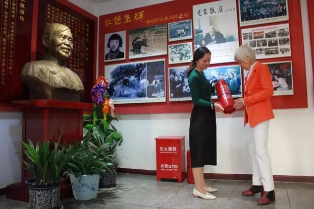 湯瑞仁,女,1930年3月出生,1987年創(chuàng)辦毛家飯店,2007年被人事部、全國雙擁辦授予“全國愛國擁軍模范”榮譽。她數(shù)十年如一日地擔任心系消防工作,情暖消防官兵,視消防官兵為兒女,在偉人故里韶山書寫了一段可歌可泣的消防情緣。