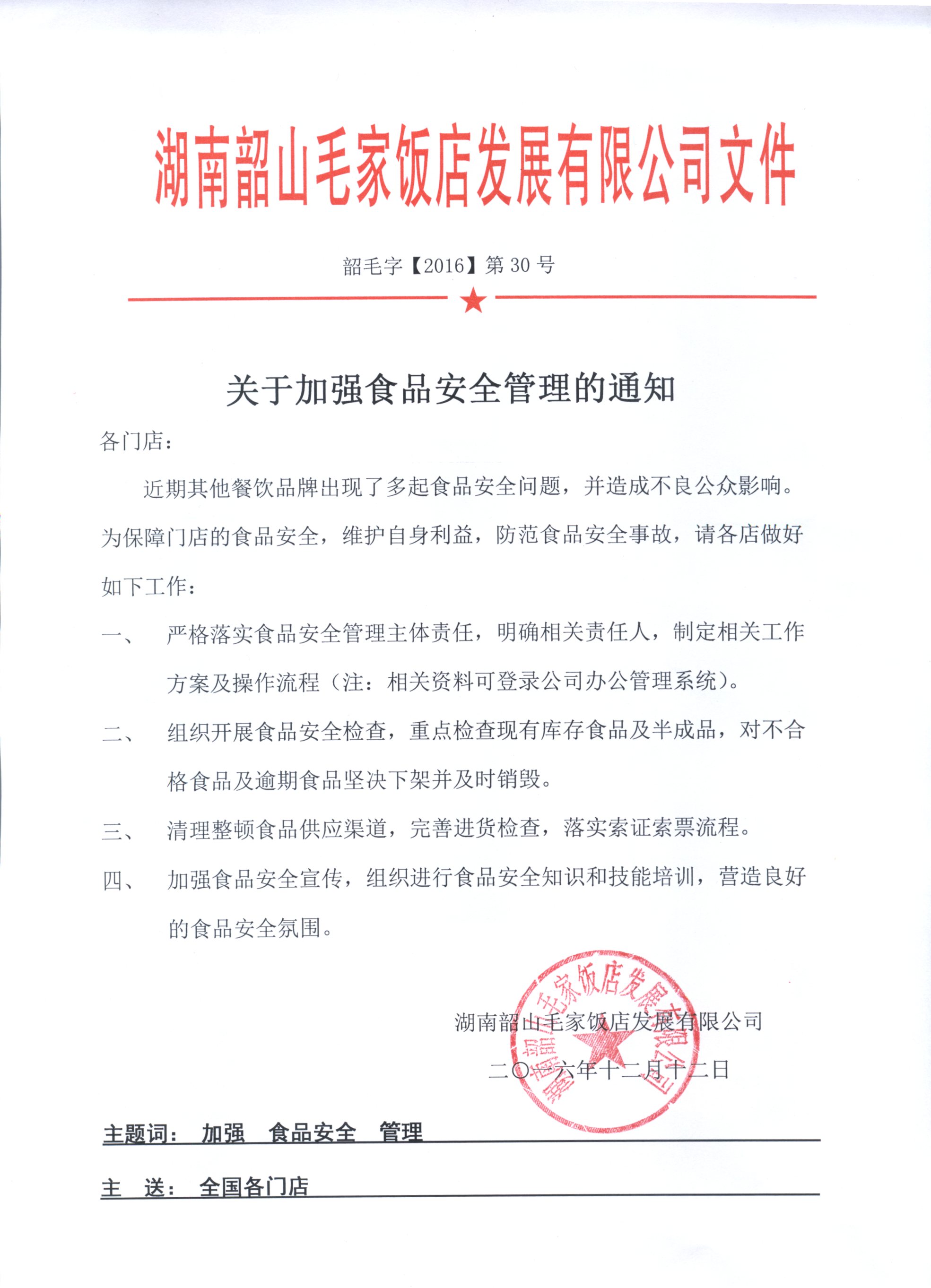 近期其他餐飲品牌出現(xiàn)了多起食品安全問題,并造成不良公眾影響。為保障門店的食品安全,維護(hù)自身利益,防范食品安全事故,請各店做好如下工作: