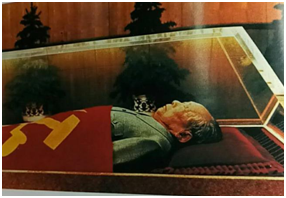 我們在毛主席遺容前深情一望,禮鞠一躬,就緊隨人流出了遺容廳。毛主席高大的身軀由鮮艷的黨旗覆蓋,菩薩的面容帶著微笑,他的人安詳?shù)靥稍谒Ч桌?,他的魂也許時常遨游在祖國的天空,?;厣厣娇纯础?