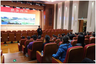 瞻仰活動進入到第五個程序,我們來到了報告廳,這個可容納500多人多媒體、軟坐凳、標(biāo)準(zhǔn)化的報告廳,僅我們一個團隊進來,只能坐在中間區(qū)位,顯得空蕩蕩的。在報告廳的背景墻上、紀(jì)念堂大幅外景的動態(tài)畫面上,閃爍著“思念的河”四個鮮紅的大字。